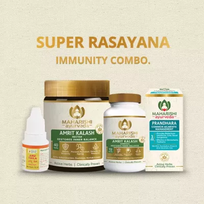 The current scenario might have you wondering about ways to boost your immunity. This is because your body’s first line of defence against any virus is a well balanced immune system. So, don’t wait for a cure. The best approach is to stop the germs from entering your body. Our Super Rasayana Immunity Kit is here to bring the long-lasting immunity. It powers up your resistance to fight off illnesses.  Coined as “ the nectar of immortality”, the Combo kit consists of -Amrit Kalash, Prandhara and Anu Thaila. It has been founded on the principle of improving the immune system naturally for overall good health and well being. The herbs are combined in precise proportions and prepared in the traditional Ayurvedic way.  Why this combo The Super Rasayana Immunity Kit is a combination of Rasayanas that balance the doshas and promote longevity and overall health. The biggest strength of this combo pack is to increase immunity by addressing the source of imbalance without any side effects.