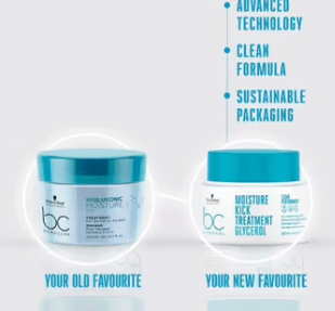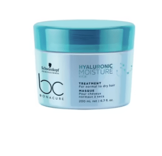 Schwarzkopf BC Bonacure Hyaluronic Moisture Kick Treatment contains a light emulsion base. Due to the light emulsion base, the moisturising agents penetrate the hair very quickly, intensively hydrating the inner structure. Based on natural Guar kernels, molecules fill gaps in the hair’s outer layer, ensuring a supple hair feeling.