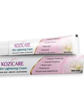 Rich blend of Kozicare skin Lightening cream adds true fairness to the face that is skin deep. Well known kojic acid with Arbutin reduce dark sports by Inhibiting melanin synthesis. It protects skin from the harmful UV rays. Lightens your skin tone by reducing uneven pigmentation. Unveils visibly fairer skin by reducing the dark spots. Stimulates skin renewal and helps lighten spots, blemishes Day after day, skin is fairer, and skin tone gets more even.