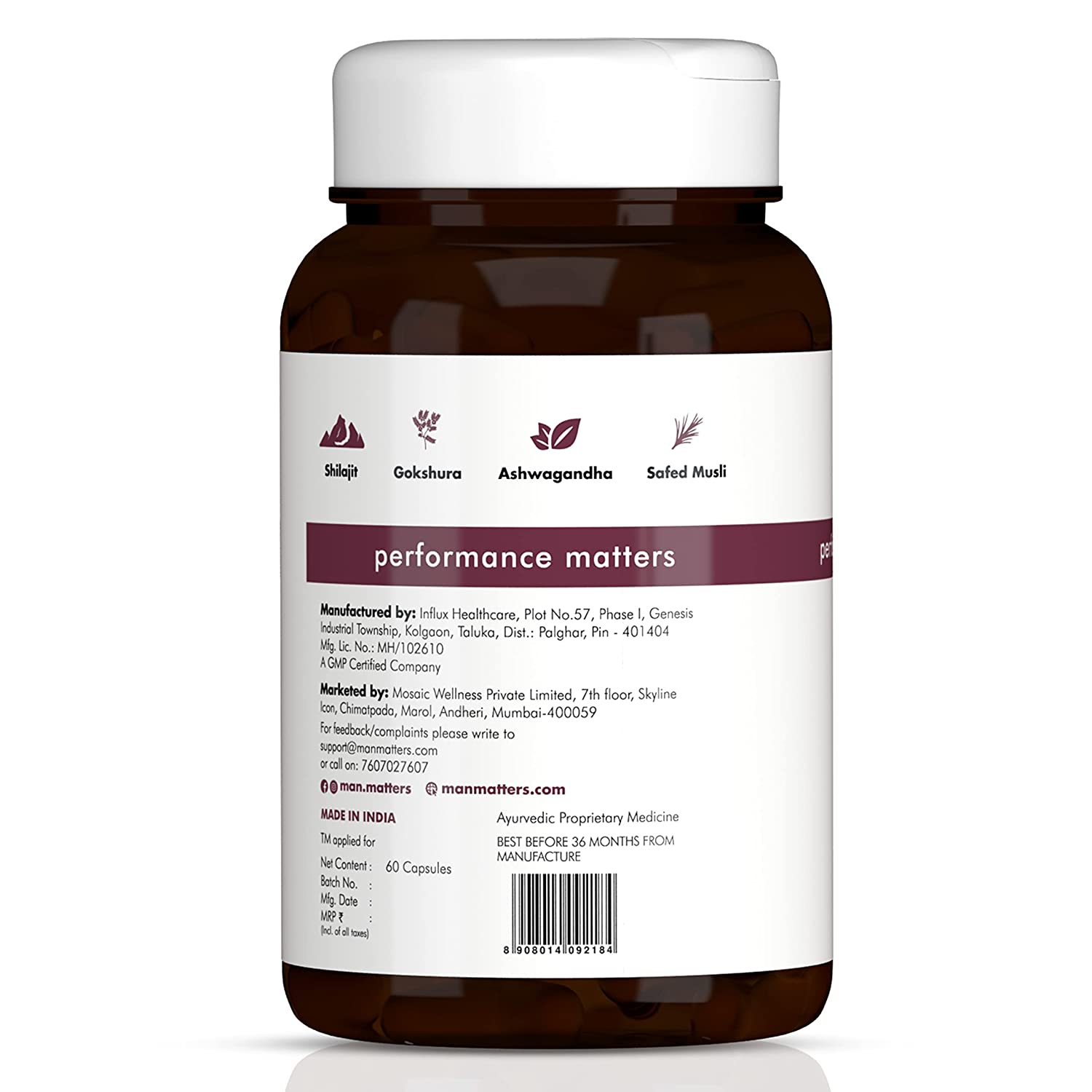 Man Matters Pure Himalayan Shilajit Ashwagandha, Gokshura, Safed Musli & Kesar Capsules | 20 Natural Herbs | 60 Tablets
