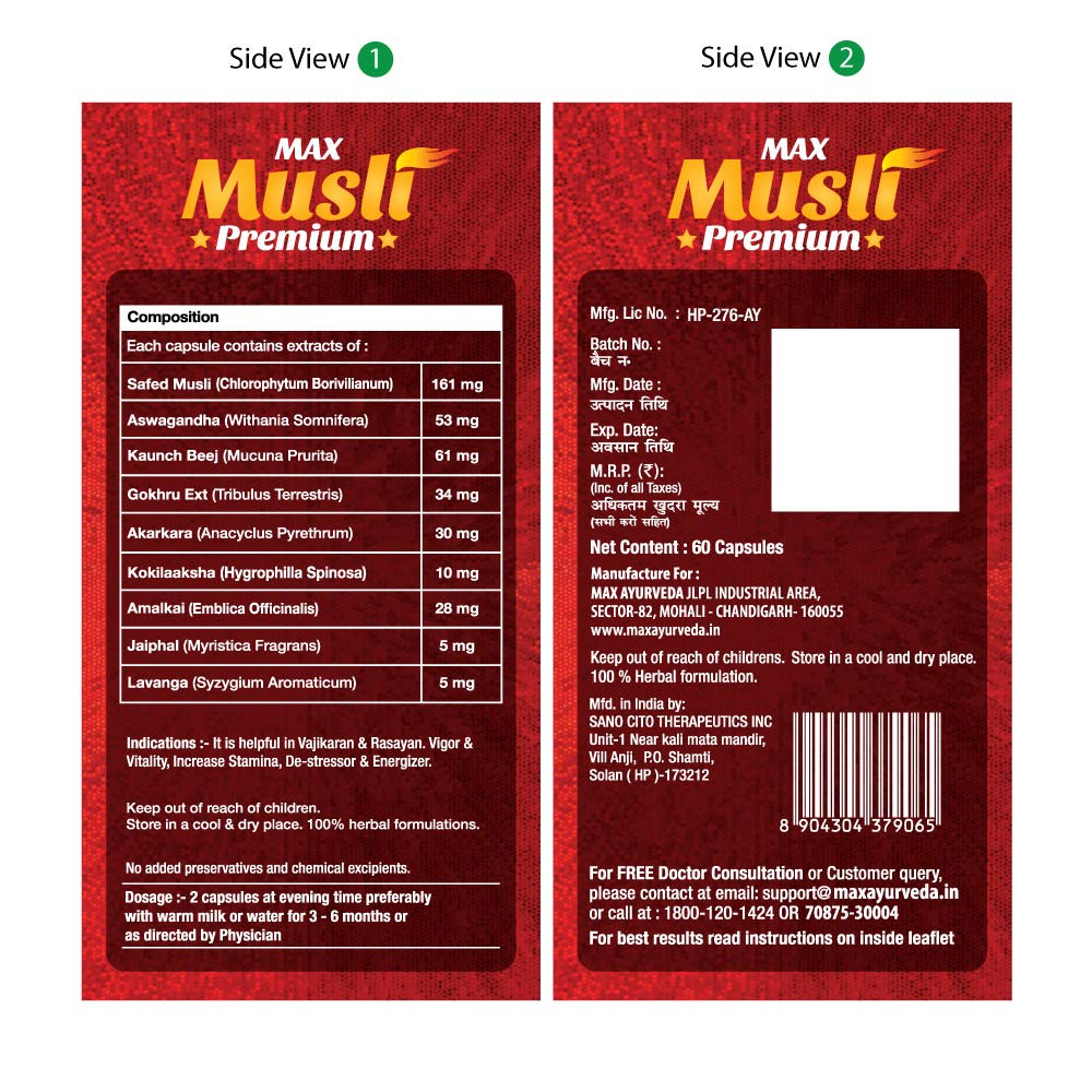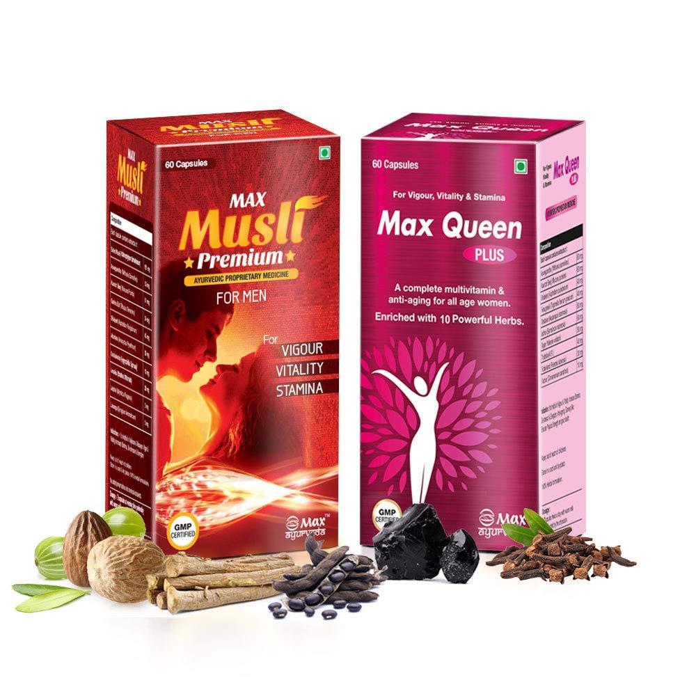 Max Ayurveda Musli Premium For Men & Max Queen Plus For Women (60 capsules + 60 capsules)