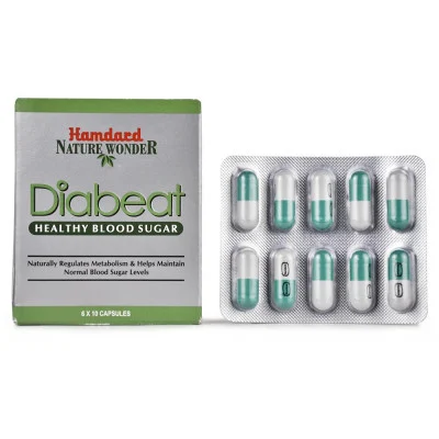 Hamdard Diabeat Capsules is an unique Unani, all natural multi herb formulation that helps provide long lasting and optimum control of blood sugar levels. Diabeat stimulates the pancreas to enhance the Beta cells secretion, improves secondary utilization of glucose and minimizes the absorption of glucose from the intestine. Diabeat helps to take care of problems such as frequent urination and also helps to prevent the complications associated with unhealthy sugar levels like skin infection, retinopathy and nephropathy.